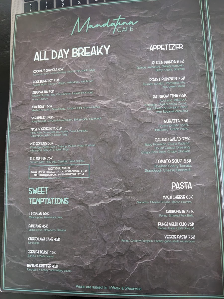 Welcome to Mandatina Cafe Canggu, a hidden gem nestled on Jl. Raya Babakan in the serene area of Canggu. This cozy café is perfect for those seeking both quality and tranquility away from the bustling main roads.